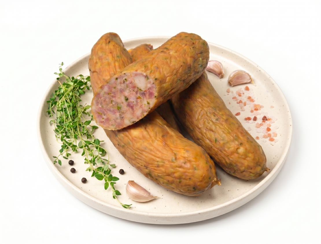 Kiełbasa grillowa z majerankiem eko to propozycja dla tych, którzy w kuchni szukają harmonii między soczystym mięsem a wyrazistym, ziołowym aromatem. To rzemieślnicza wędlina stworzona z myślą o zdrowym grillowaniu. Dzięki połączeniu najwyższej jakości ekologicznej wieprzowiny z dużą ilością aromatycznego majeranku, produkt ten wyróżnia się na tle tradycyjnych wyrobów głębokim smakiem i doskonałym aromatem.