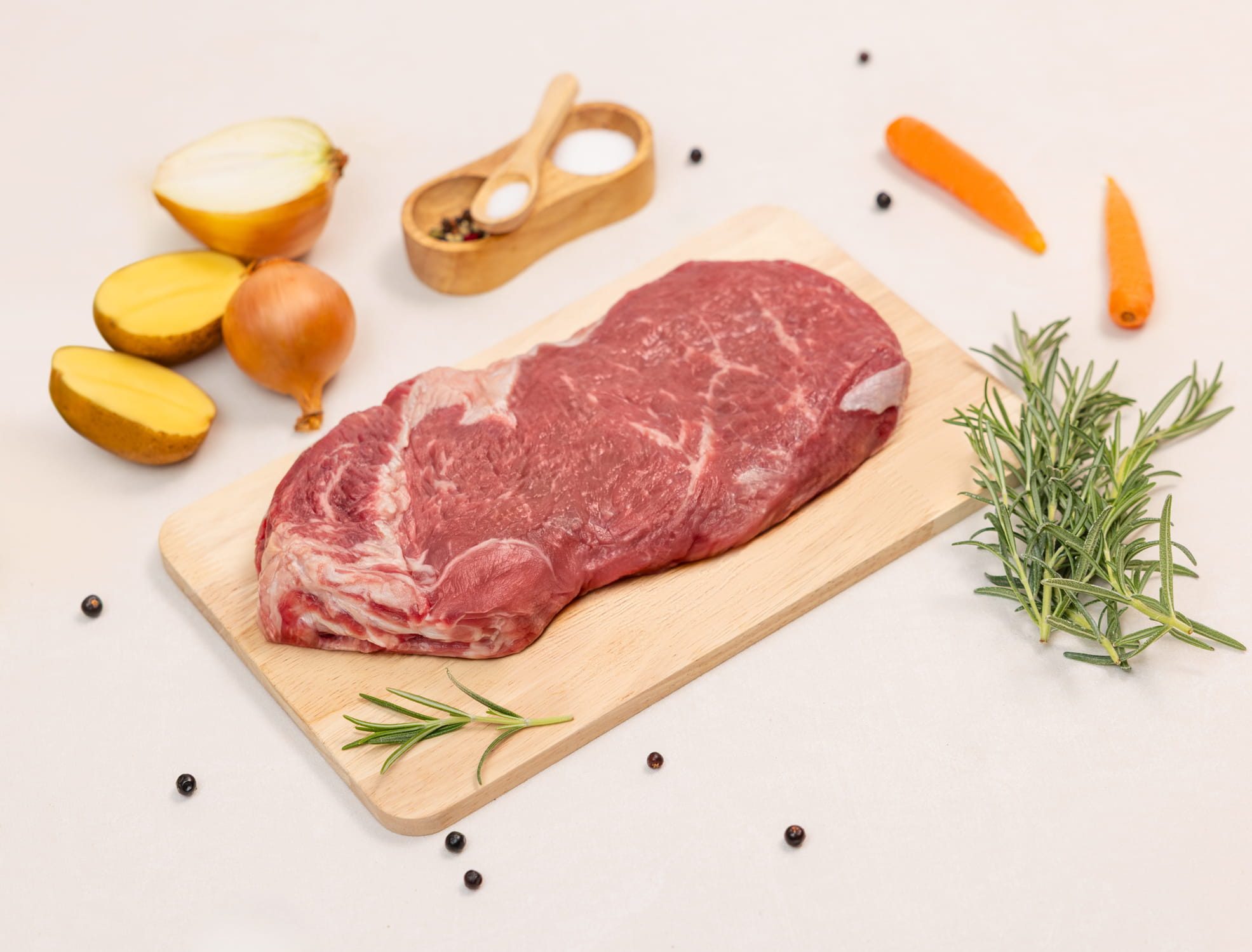 Rostbef wołowy eko to propozycja dla miłośników konkretnego, mięsnego aromatu i idealnej tekstury. Pochodzący z certyfikowanych hodowli ekologicznych, charakteryzuje się czystym składem i naturalnym tempem wzrostu zwierząt, co przekłada się na unikalne walory kulinarne. Jeśli szukasz balansu między delikatnością polędwicy, a głębią smaku antrykotu, nasz rostbef będzie strzałem w dziesiątkę. Rostbef jest bogaty w wartości odżywcze. To doskonałe źródło czystego białka (ok. 22g na 100g produktu). Ze względu na niższą zawartość tłuszczu wewnątrz mięśnia, jest chętnie wybierany przez osoby na diecie redukcyjnej i sportowców. Zawiera dużą dawkę cynku, selenu oraz witaminy B12, niezbędnej dla układu nerwowego.